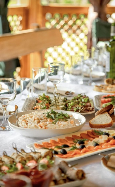 Салаты, закуски, горячее и гарнир подаются "в стол" на общих блюдах